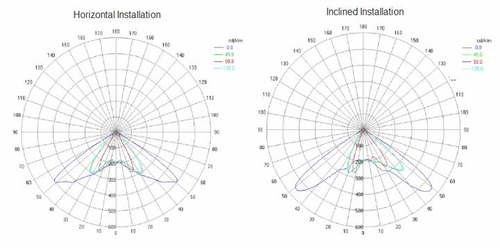 Bat-wing beam pattern of the distribution curve can be adjusted according to different section’s requirements. Rationally we can control the distribution to let it be a rectangular beam pattern. When the installation height is 12m, the beam pattern is 40x16m rectangular , and the radiation-efficiency is more than 70% in the effective region, the total transparence is more than 90%, the possibility to reduce the loss of the light reaches the maximum. The illumination uniformity is very good in the effective radiation region, even it is better than grade of 0.5 and higher than the highest grades of 0.4 of the state road’s standards. The edge of the beam pattern is very clear and slide, no adverse glare is out of the effective radiation region, it causes no light pollution, it is an idea to cut-lighting lamp and meet the requirements of the road lighting or other special lighting, which can also be widely used for the special requirements such as street lighting, advertising lighting, etc.; it is a green, energy-saving, environmentally friendly lighting product.